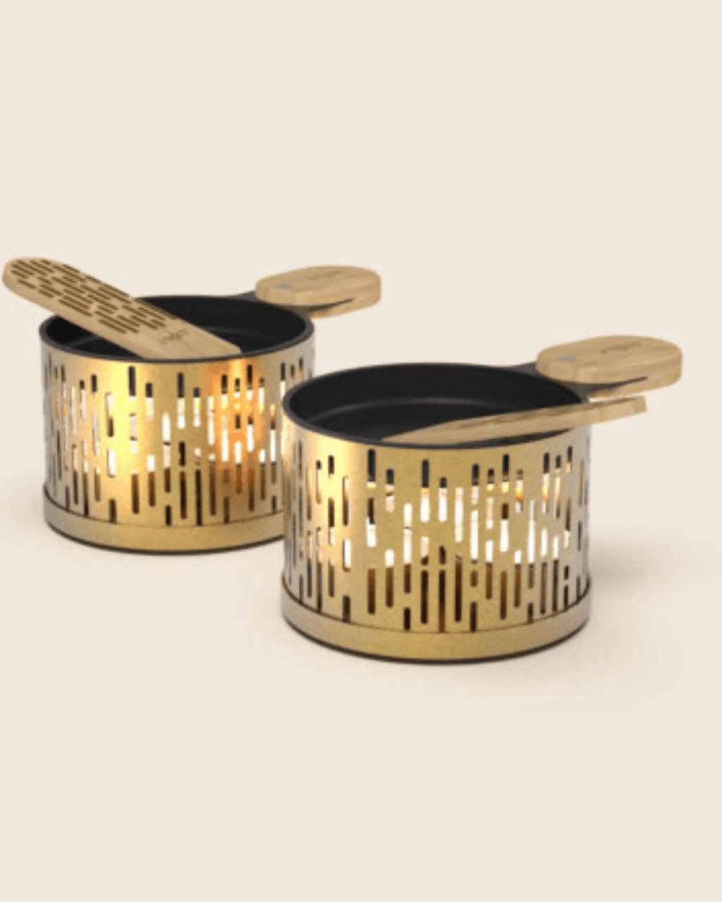 Réinventez la raclette avec un set compact, élégant et nomade. Ce duo de raclettes individuelles à la bougie allie design métal/bois, praticité et sobriété énergétique pour des moments conviviaux, sans appareil électrique.