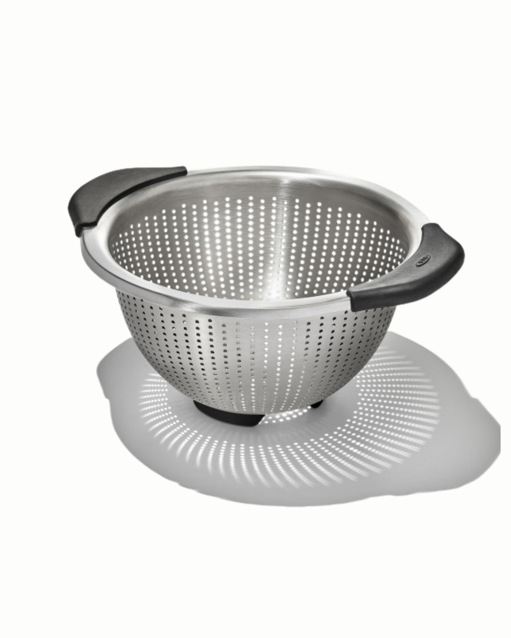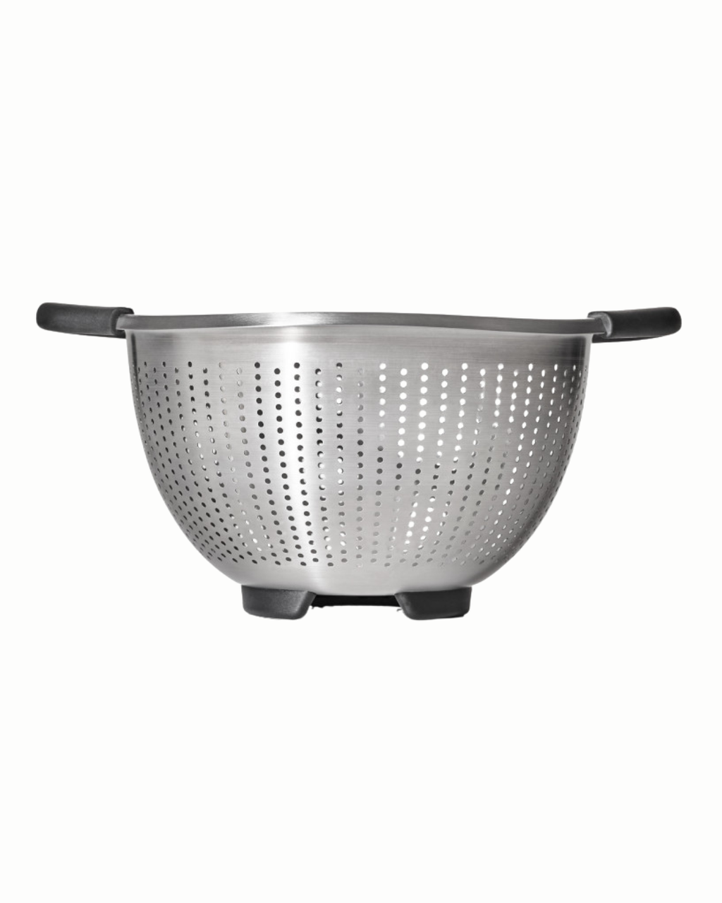 Indispensable et ultra polyvalente, la passoire inox OXO 2,8 L égoutte pâtes, riz et légumes rapidement tout en retenant même les aliments les plus petits grâce à ses micro-perforations Ø 2 mm sur tout le pourtour.
