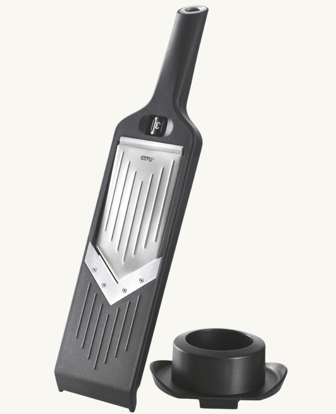 Compacte, sûre et ultra-pratique, la GEFU VIOLI tranche vos légumes en 5 épaisseurs réglables de 1 à 5 mm d’un simple tour de molette. Sa lame en acier japonais (remplaçable) assure une coupe nette et régulière, tandis que le poussoir protège-doigts et les pieds antidérapants en silicone garantissent une excellente stabilité. Une boucle de suspension inox facilite le rangement, et le passage au lave-vaisselle simplifie l’entretien. La mandoline du quotidien, taillée pour durer.