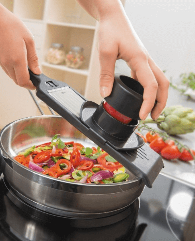 Polyvalente : 5 épaisseurs 1–5 mm pour salades, gratins, carpaccios de légumes.