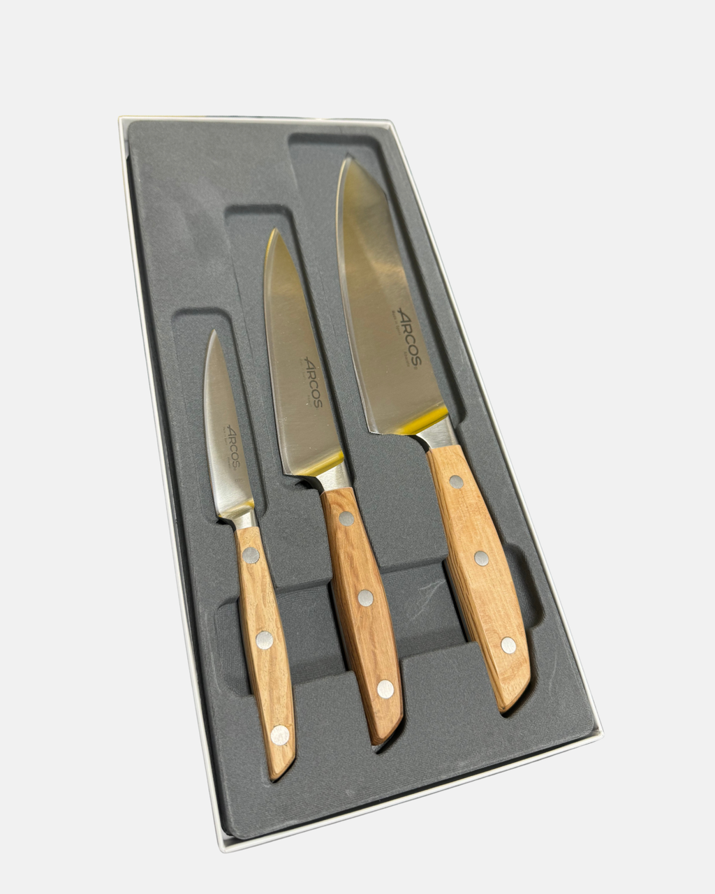 Coffret 3 Couteaux Forgés Manhattan Chêne Clair -Arcos
